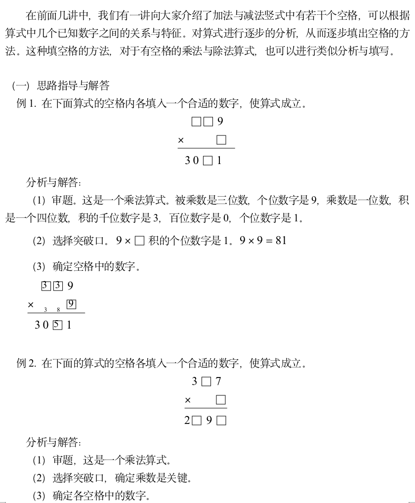 小学奥数-填空格(三)