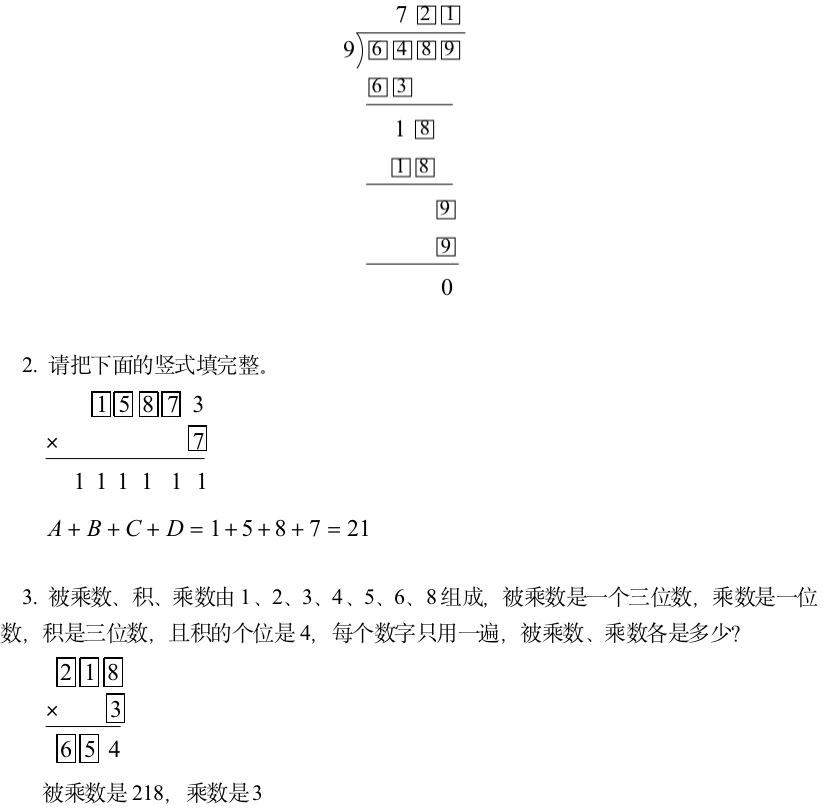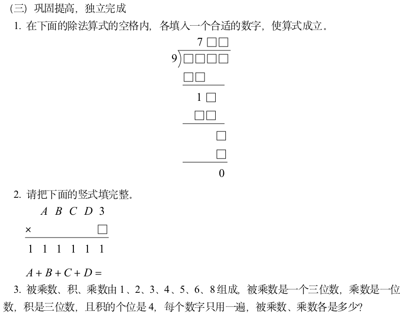 三年级数学上册(人教)