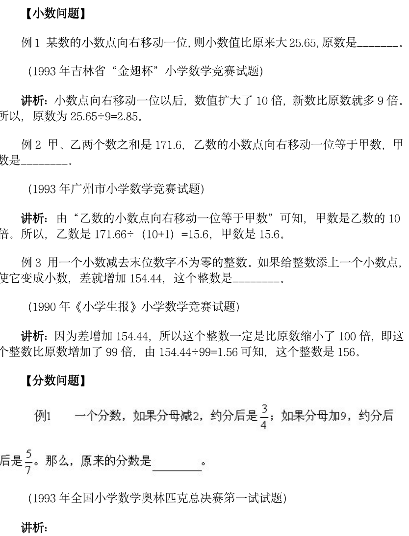小学奥数-小数和分数