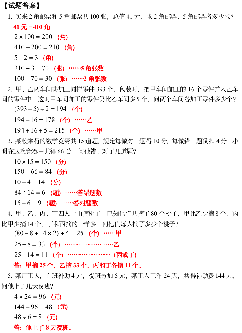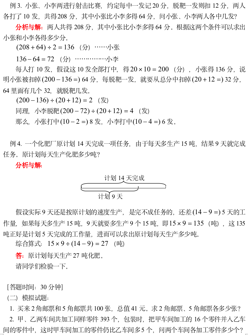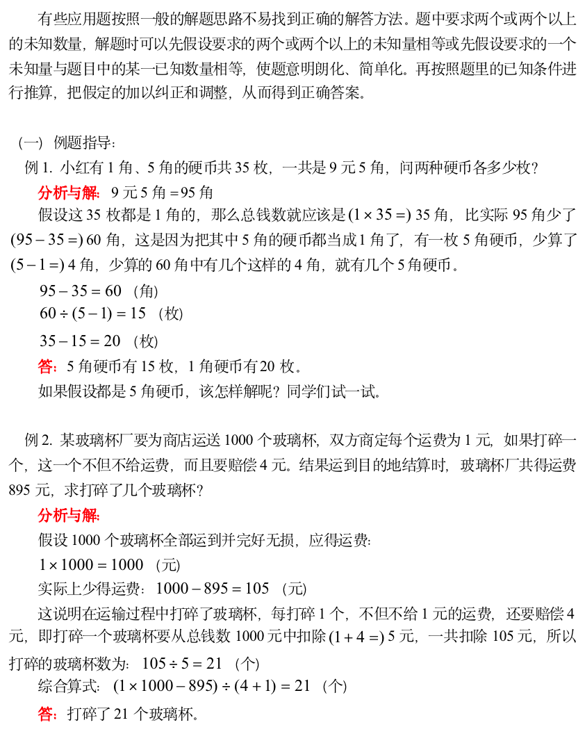 小学奥数-用假设法解应用题(一)