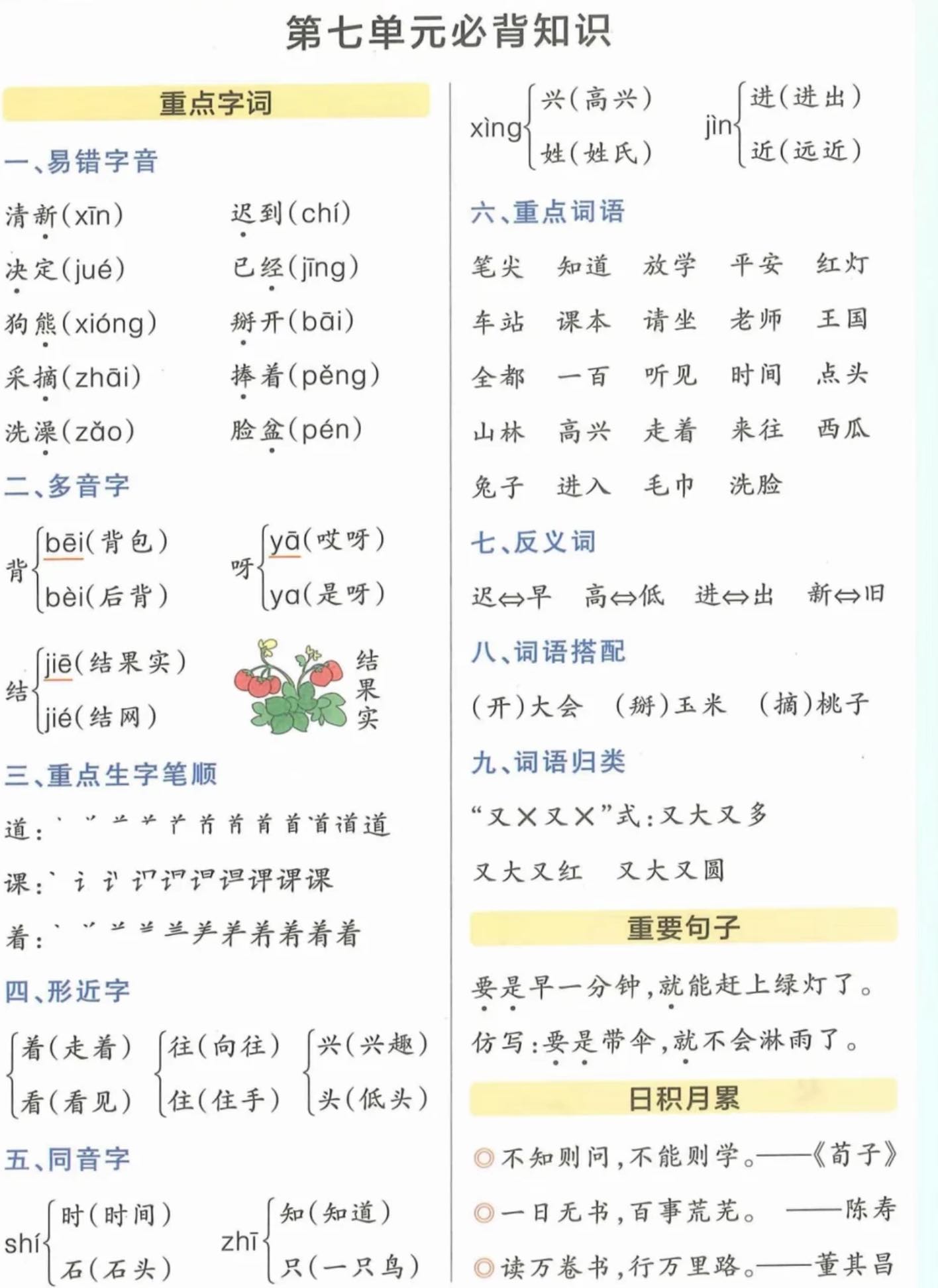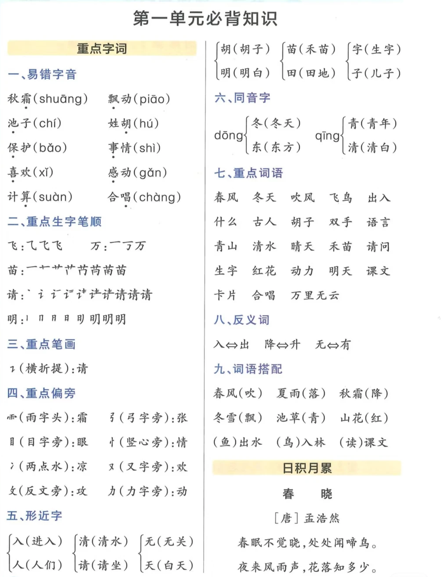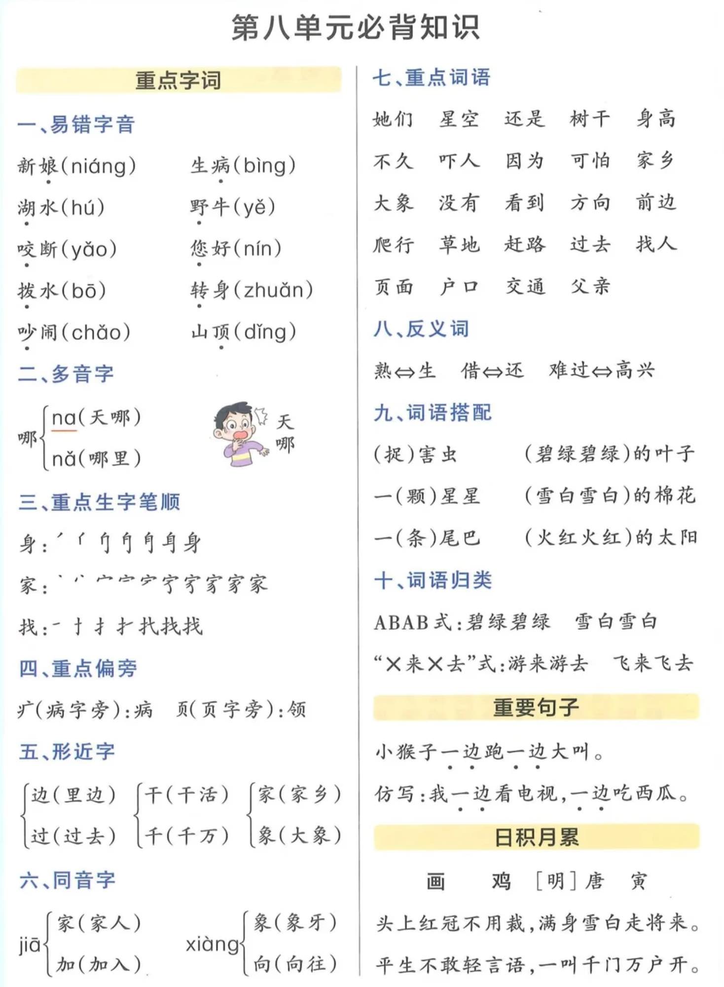 一年级下册语文1-8单元重点知识整理