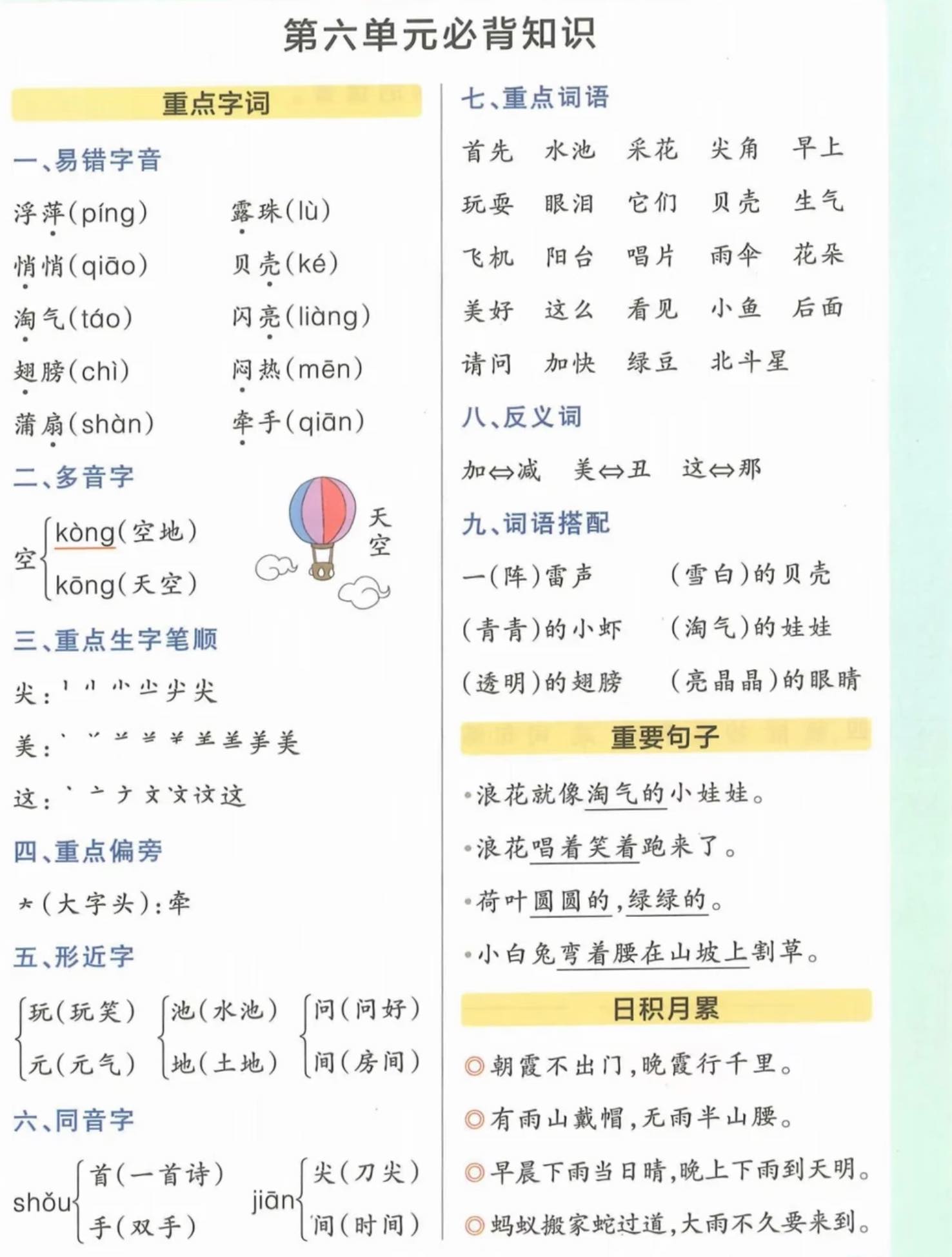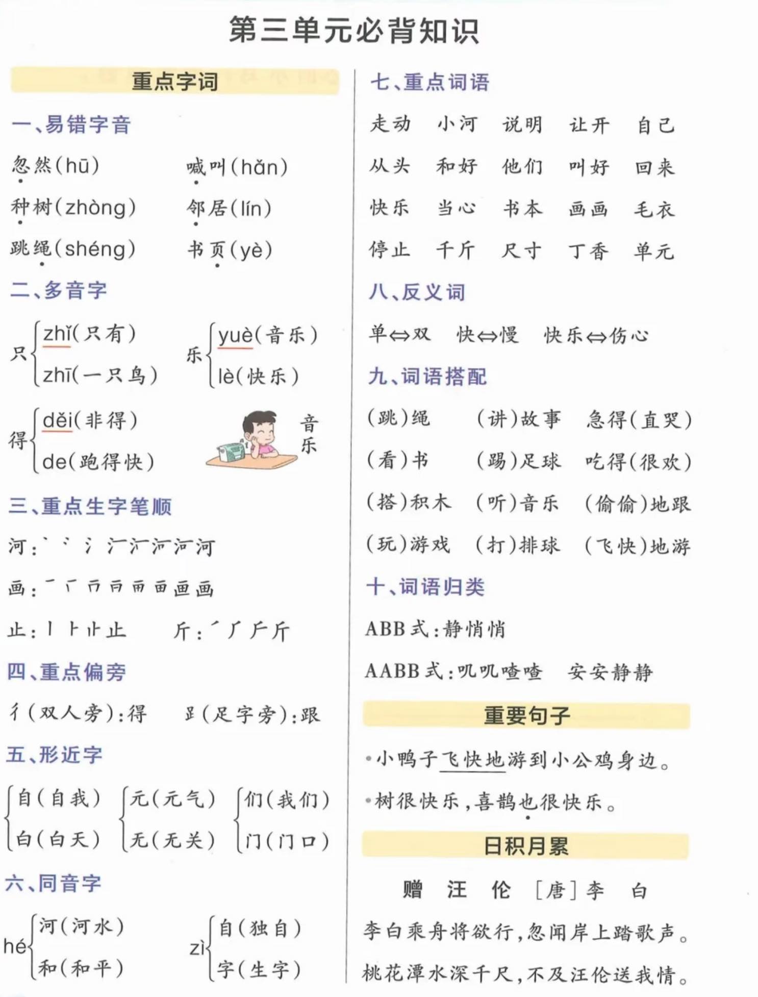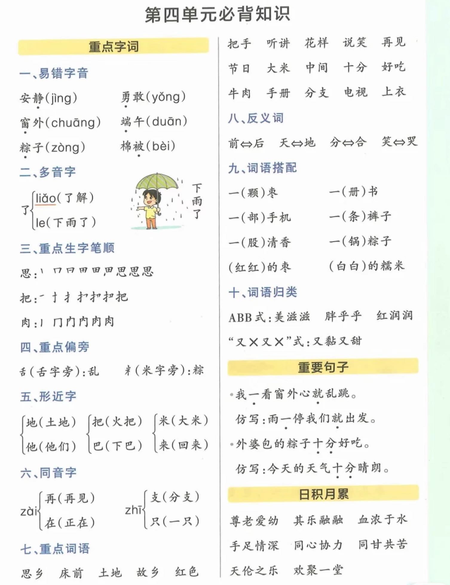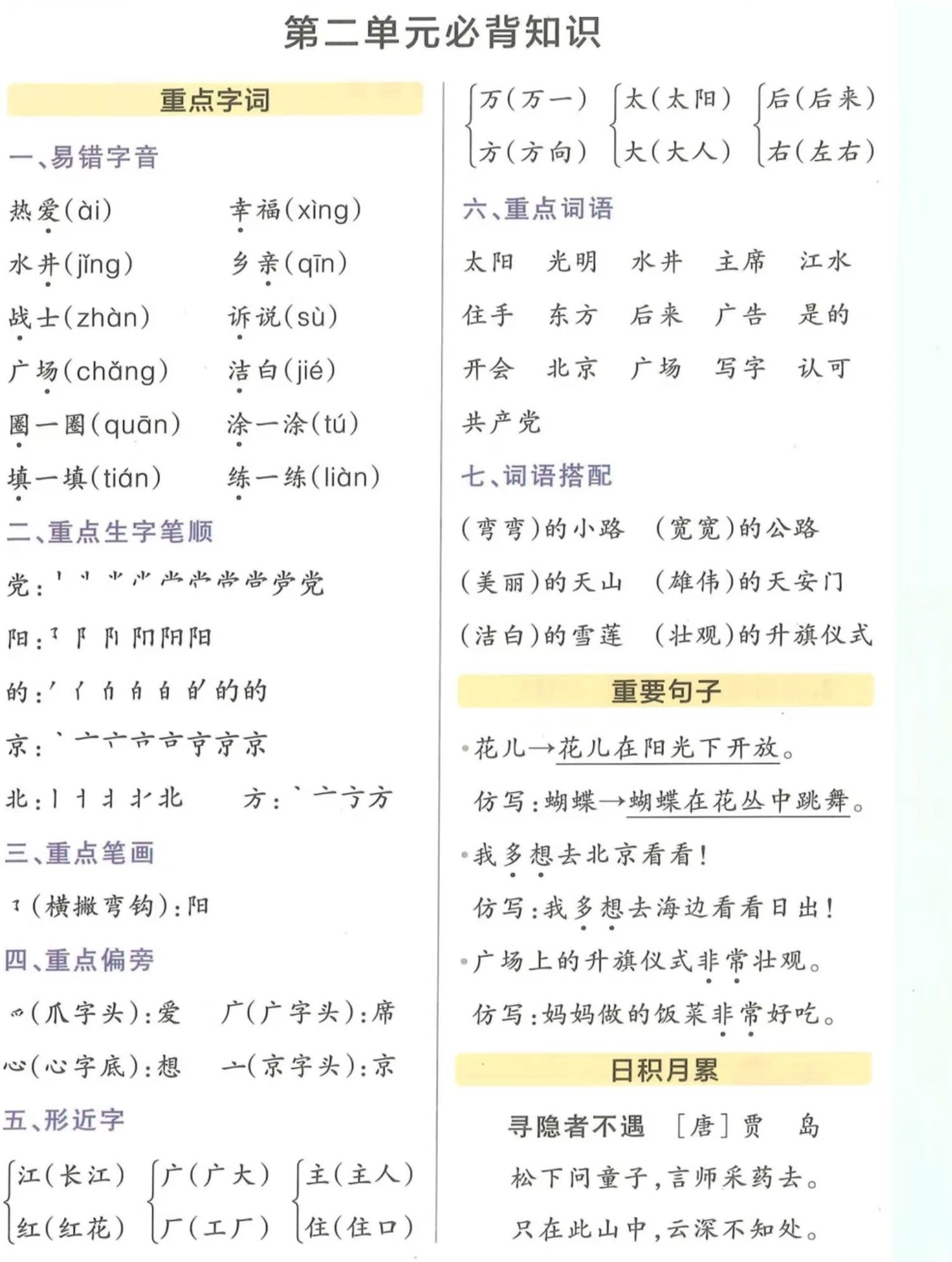 一年级下册语文1-8单元重点知识整理